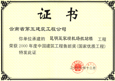 昆明市第一人民醫(yī)院外科住院大樓—2005年度“AAA級安全文明標(biāo)準(zhǔn)化誠信工地”